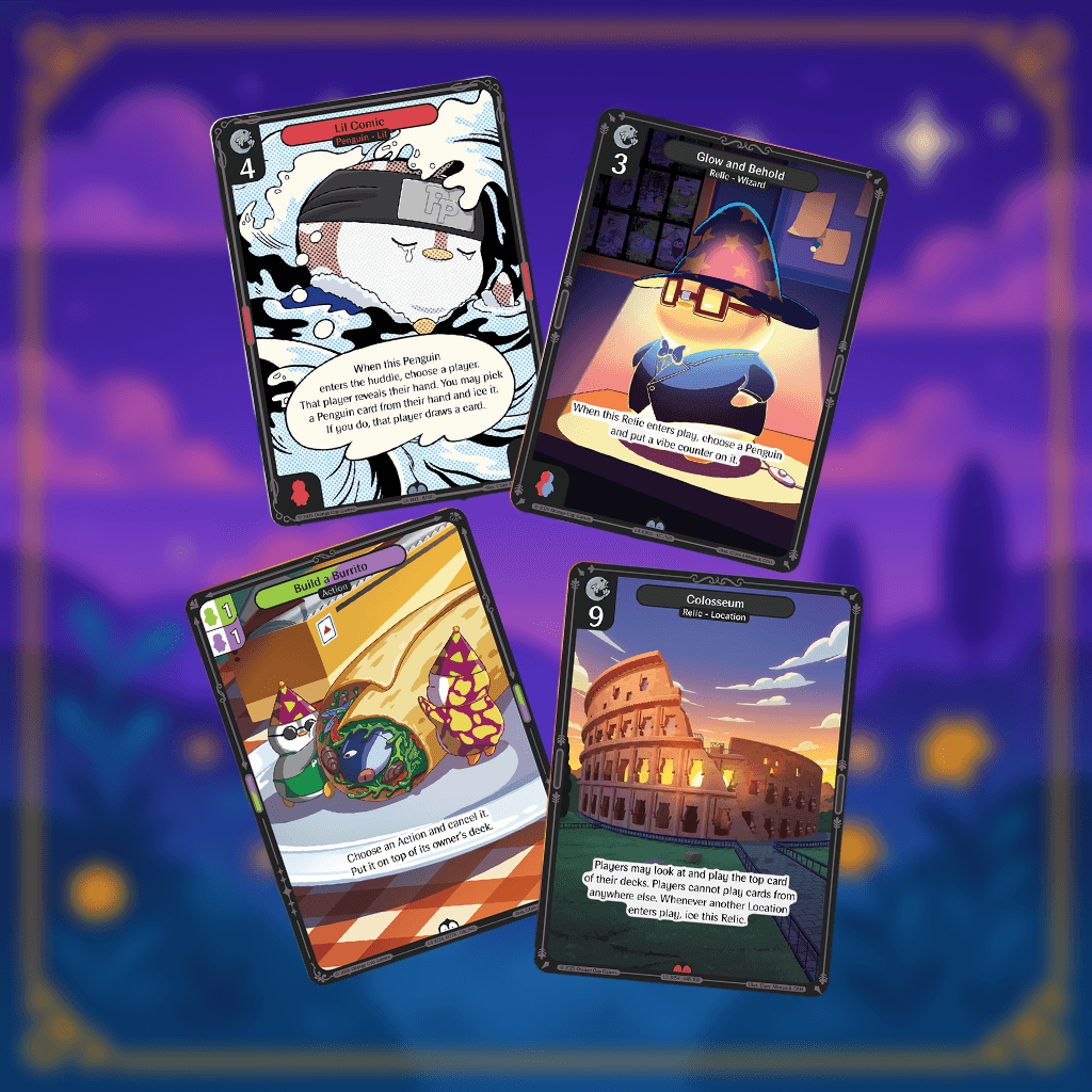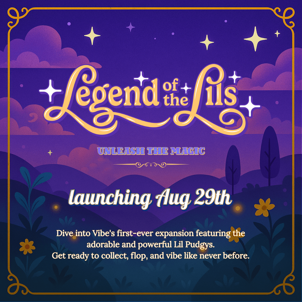 We’re proud to announce the launch of our first expansion set: Legend of the Lils, inspired by the adorable and powerful Lil Pudgys. This new chapter of the Vibes universe introduces 150+ new cards, including multicolor Penguins, powerful new Actions, and the debut of Location cards – a fresh mechanic that adds depth to your huddle-building strategy.