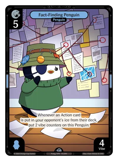 Penguins in play can have Vibe Counters placed on them. Vibe Counters stay on Penguins for as long as those Penguins remain in play. Vibe counters do not count as cards.