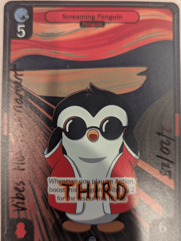Even if he’s 0 vibe and ices himself, that can be useful. I’ve had games where I removed all other penguins from my ice so I could loop Bunkus, Who Is the Stars and keep resetting. It’s absurd.